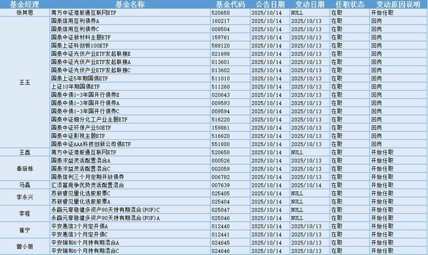 新基金经理上任方面,汇添富基金马磊现任基金资产总规模为55.66亿元,管理过的基金多为指数型和混合型基金,任职期间回报最高的产品是汇添富自主核心科技一年持有混合A(013369),为混合型基金,在任职的1年又167天时间内获得116.75%的回报,至今仍在管理该基金。新上任汇添富竞争优势灵活配置混合这只基金产品的基金经理。